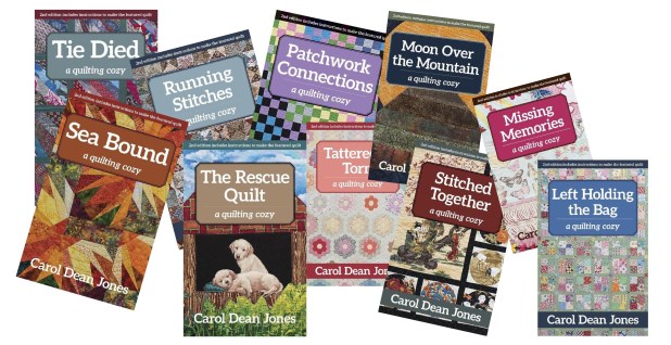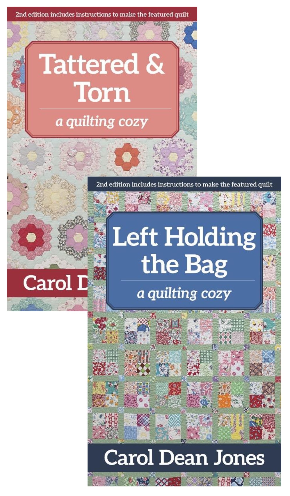 During the month of January 2019, C&T Publishing will be re-releasing the last two books of the ten-book Quilting Cozy series. Both of these books, Tattered and Torn and Left Holding the Bag offer a glimpse into quilters’ past. In Tattered and Torn, Sarah and Sophie attempt to track down the history of a vintage quilt while Left Holding the Bag offers a look into the world of feedsack fabric. Mystery, relationships, a side trip to New Orleans, and lots of quilting abound in both books. As always, the pattern for the cover quilt is included with each book. Enjoy!
