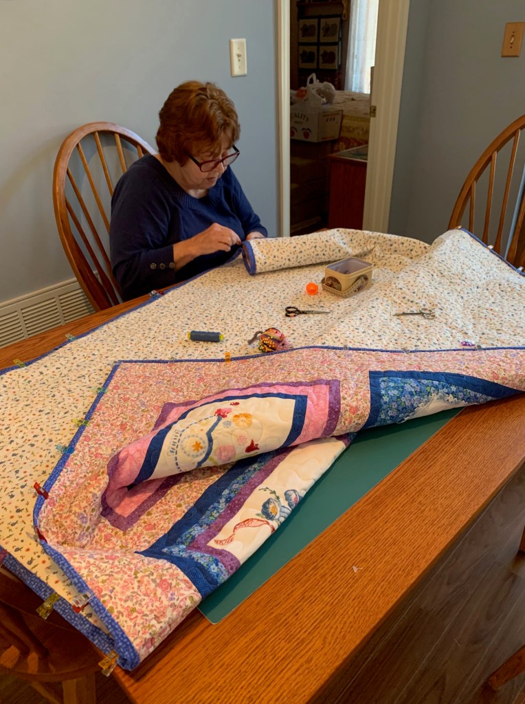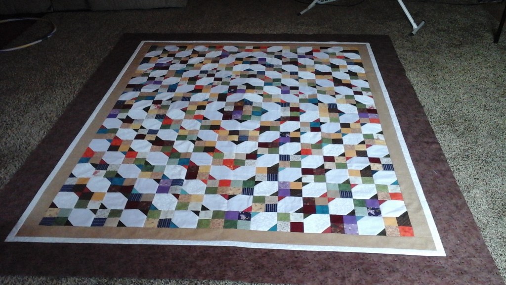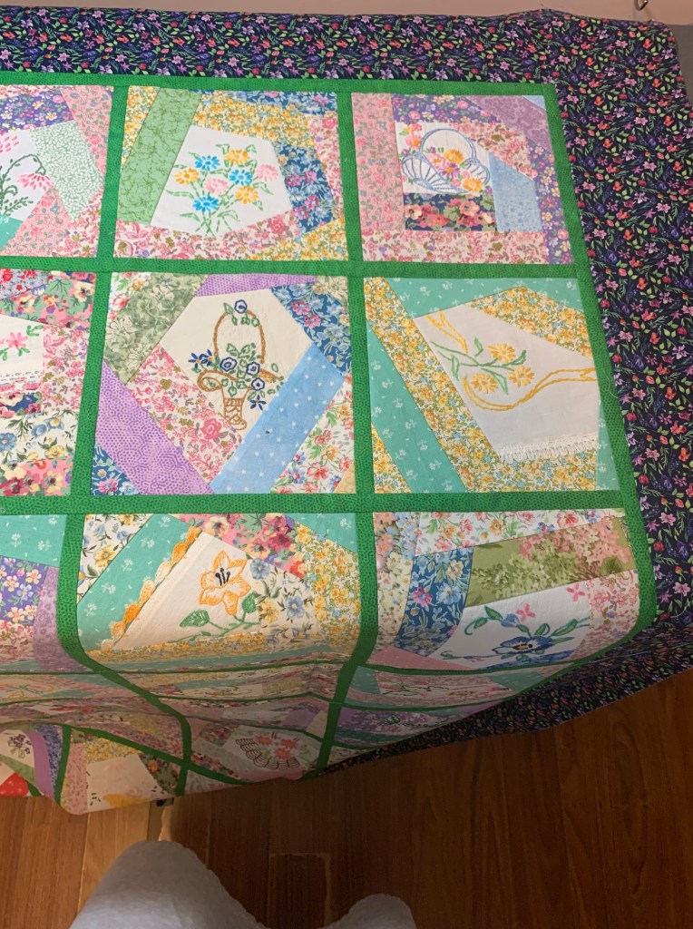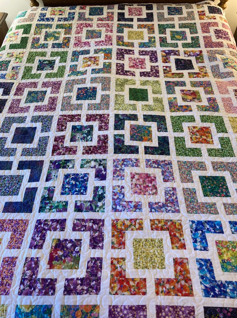 I just finished a quilt (below) for my daughter and it’s now waiting for binding (not my favorite part of quilting).