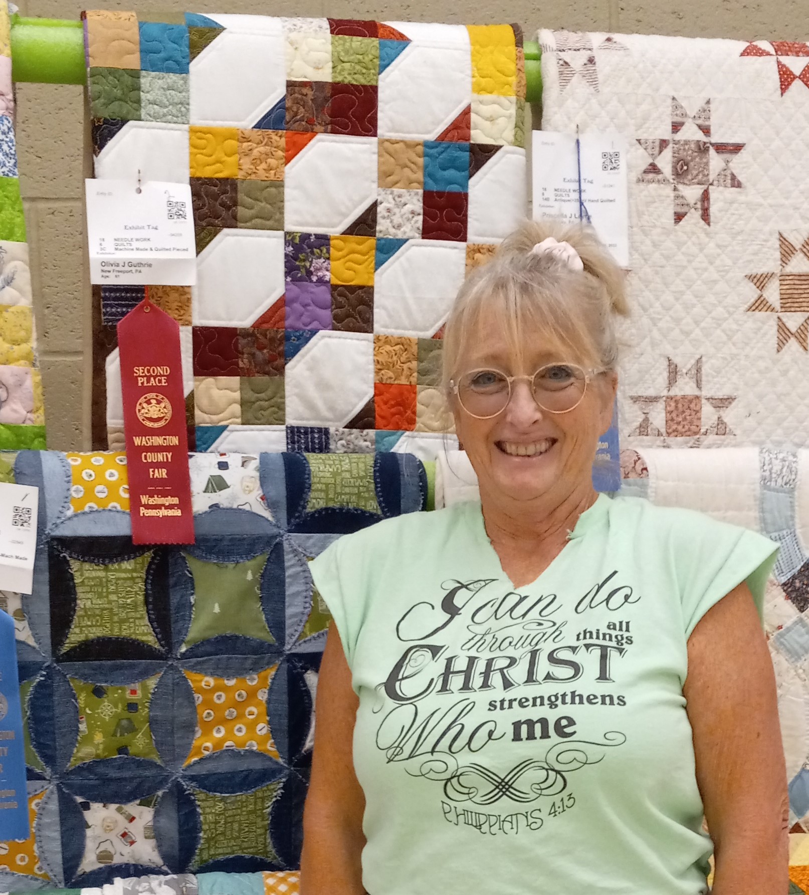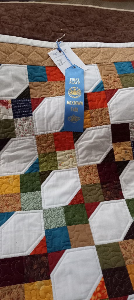 Olivia won 2nd PLACE in the ‘machine pieced and machine quilted‘ category at the Washington County Fair in Pennsylvania! (see her excitement??)